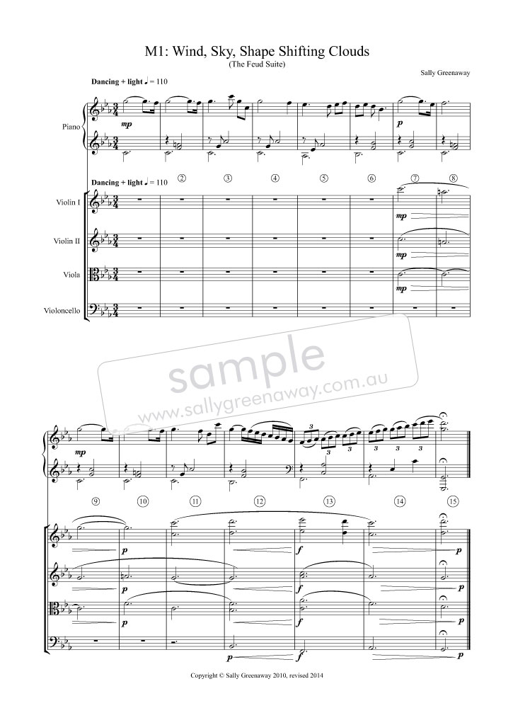Instrumentation: Quintet: String Quartet, Piano + Narrator (opt. Soprano): The poetry narration may be performed by a Soprano as one of the movements has an optional vocalise descant for soprano. Scored to work equally well for string quartet (or opt. quintet with optional Double Bass) or String Orchestra.
