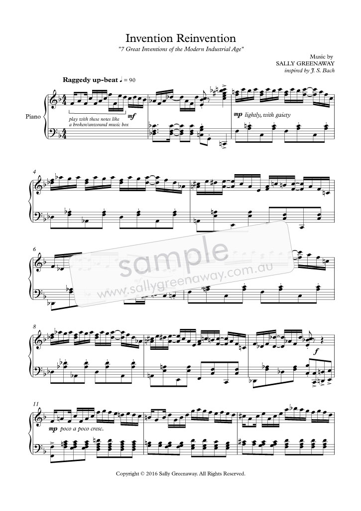 This is a movement from the dramatic music work The 7 Great Inventions of the Modern Industrial Age for chamber ensemble, actor, set design and lighting design. The full large-scale work was commissioned by the Myer Foundation in conjunction with Melbourne Recital Centre in 2016.