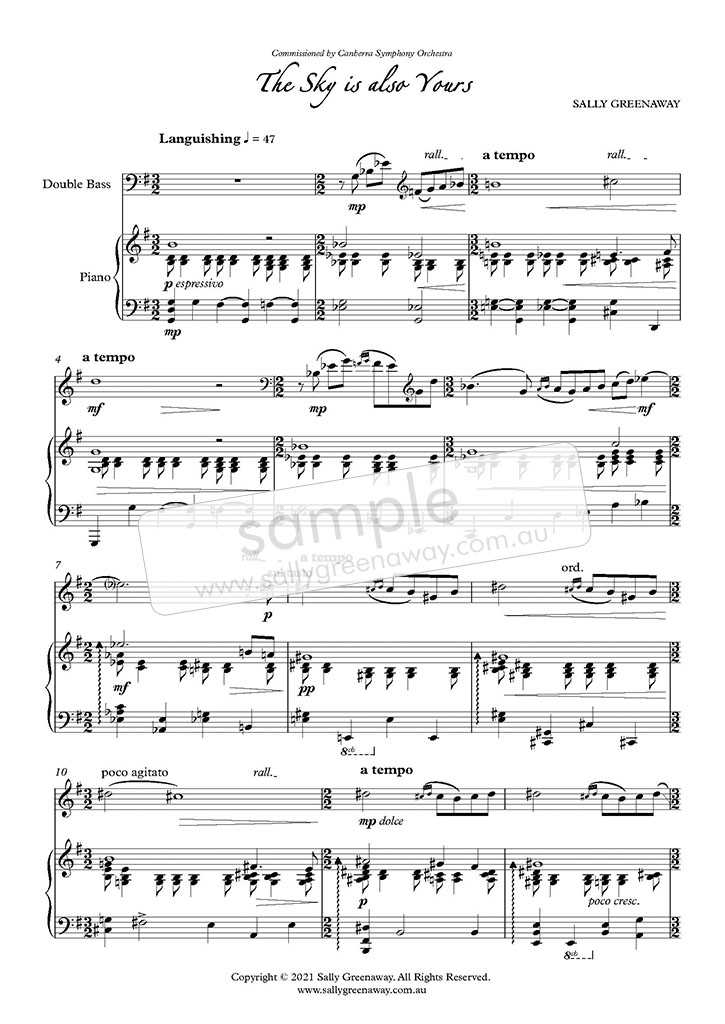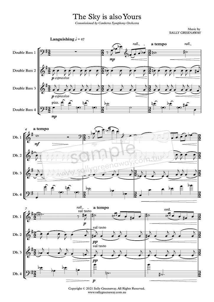 As pandemic restrictions ease across Australia, composer Sally Greenaway reflects upon the last two years through her new work The Sky is Also Yours. Commissioned by the Canberra Symphony Orchestra for their Spring Digital Concert 2021, the piece is scored for four members of their Double Bass section.